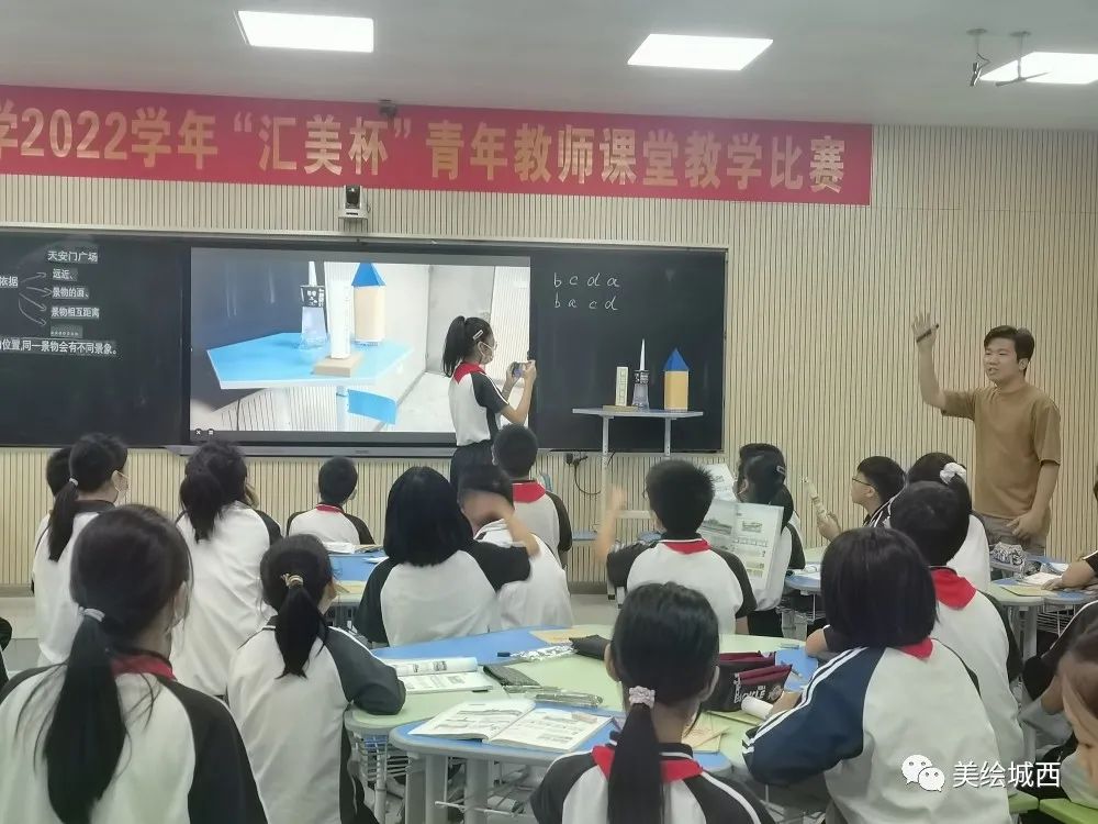 潘鍵宏老師帶來六年級《天安門廣場》一課,潘老師能夠?qū)⒍嗝襟w技術(shù)深度融合課堂,讓學(xué)生在親身體驗中感受“不同位置,觀察到的景象不同”,從學(xué)生思維的特點除法,循循善誘,課堂流暢、自然。