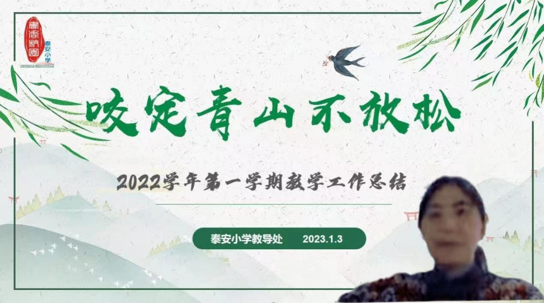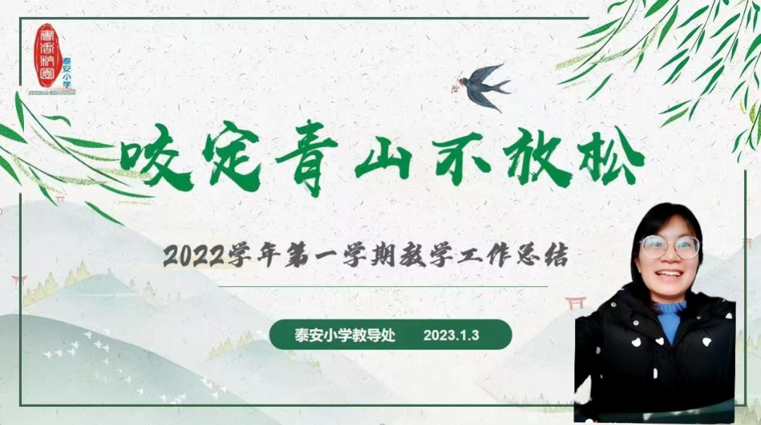 從金秋走到臘月,從寒冬跨過(guò)新春,過(guò)去的一學(xué)期在忙碌而充實(shí)的工作中悄然結(jié)束。2023年1月3日,泰安小學(xué)舉行了2022學(xué)年第一學(xué)期教學(xué)工作總結(jié)線上會(huì)議。 總結(jié)會(huì)上,教務(wù)處何少森主任總結(jié)了本學(xué)期的教學(xué)工作開展情況,首先,何主任總結(jié)了本學(xué)期學(xué)校開展的重點(diǎn)工作,從開學(xué)初的科組長(zhǎng)和級(jí)長(zhǎng)會(huì)議的順利開展,再到每年“翠竹杯”的順利進(jìn)行,也展示了這學(xué)期學(xué)校和老師們獲得的可喜的成績(jī)和進(jìn)步,肯定了全體教師們的辛勤付出,鼓勵(lì)老師們?cè)俳釉賲?、勇?chuàng)佳績(jī)。同時(shí),也提出工作中我們有待提高的地方,要求老師們?yōu)閭€(gè)人專業(yè)發(fā)展和學(xué)生全面發(fā)展做到厚積薄發(fā),多自省、多思考、多學(xué)習(xí)。 隨后,各個(gè)科組長(zhǎng)分別進(jìn)行科組工作總結(jié)匯報(bào)。依次由高語(yǔ)科組長(zhǎng)李小峰老師、低語(yǔ)科組長(zhǎng)王萍老師、數(shù)學(xué)科組長(zhǎng)劉淑蒂老師、英語(yǔ)科組長(zhǎng)溫桂花老師、綜合科組長(zhǎng)覃江桃老師進(jìn)行科組工作總結(jié),他們圍繞教研工作開展、教師教學(xué)常規(guī)工作、教師專業(yè)發(fā)展、工作亮點(diǎn)和不足之處等進(jìn)行全方面的工作總結(jié),在簡(jiǎn)單而隆重的發(fā)言交流中提升科組建設(shè)。 回眸凝望,我們初心不變;展望未來(lái),我們信心滿滿。帶著咬定青山不放松的精神,泰安小學(xué)的老師們將繼續(xù)堅(jiān)守教育本心,帶領(lǐng)學(xué)生乘風(fēng)破浪。
