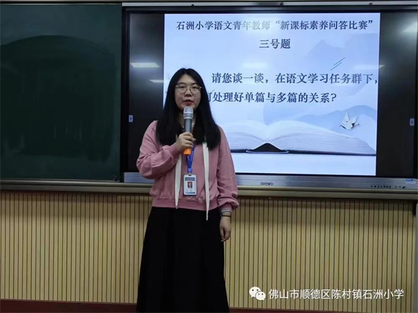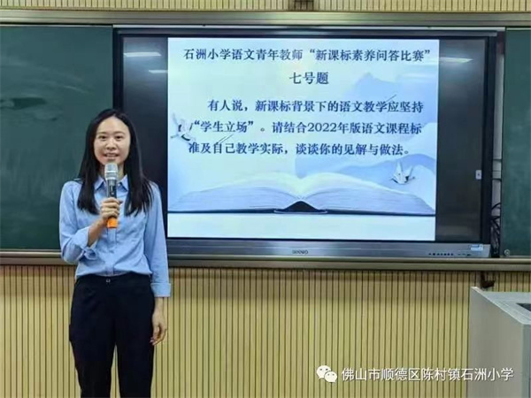 一次歷練,一次成長(zhǎng)。練潔珍老師帶來(lái)一節(jié)有序、有趣、有智的《小豬變形記》繪本閱讀讀后分享課,讓同學(xué)們?cè)谙胂蟮氖澜缋飷凵祥喿x,享受閱讀的快樂。在“青年教師新課標(biāo)素養(yǎng)問答”比賽中,選手們落落大方,各有巧思,在極短的時(shí)間內(nèi)結(jié)合教學(xué)經(jīng)驗(yàn)陳述自己對(duì)新課標(biāo)的理解,展現(xiàn)了自身豐富的知識(shí)儲(chǔ)備和超強(qiáng)的臨場(chǎng)應(yīng)變能力,為提升青年教師專業(yè)素養(yǎng)起到積極促進(jìn)作用。
