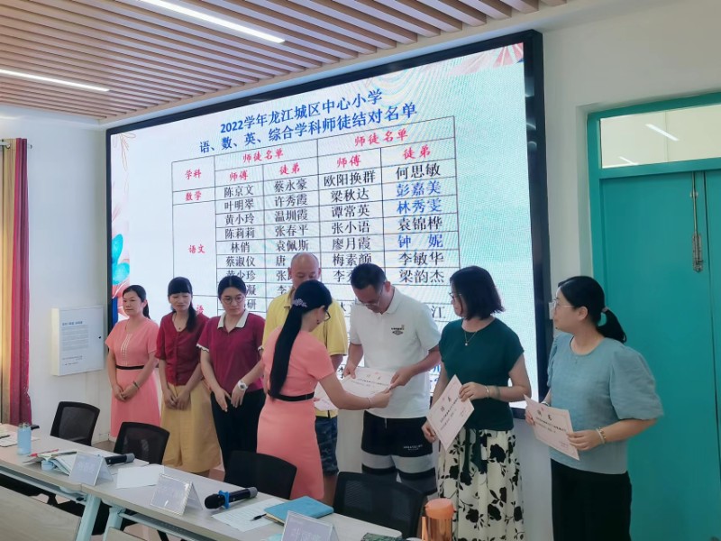 “青藍結(jié)對清秋始,惟愿枝間子初成”,為了更好的發(fā)揮骨干教師教育教學的優(yōu)勢及示范、引領(lǐng)作用,通過傳、幫、帶,促進新教師盡快適應(yīng)教育崗位的要求,實現(xiàn)師德、教學、教育管理能力的同步提高,9月9日下午龍江城區(qū)中心小學在錦屏校區(qū)舉行了“青藍工程”師徒結(jié)對活動。