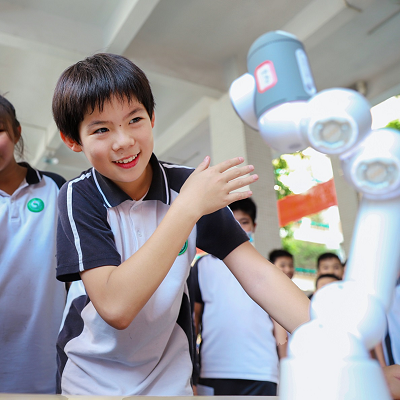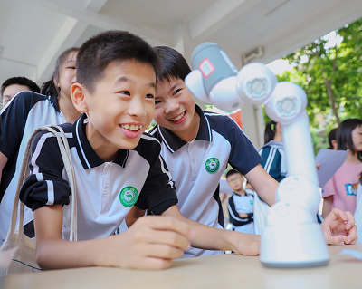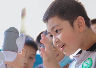 本次游園活動特邀了容桂青促會及其會員單位參與最新型編程機器人——可立寶機器人的展示。在周一的升旗儀式上,同學(xué)們已經(jīng)觀看了機器人的賣萌、跨越障礙和撿東西等精彩表演,很想近距離地一睹機器人的風(fēng)采。在周五下午的游園體驗活動中,青促會的操作導(dǎo)師們還帶來了電視屏幕,同學(xué)們既可以通過視頻觀看到最新的科技發(fā)展成果,還可以親自動手組裝和控制機器人,并進行簡單的互動。會打招呼的機器人,還有會出考題的機器人吸引了同學(xué)們的注意力——嵌入情感互動的機器人,就好像電影《超能陸戰(zhàn)隊》里面的大白一樣,真的太有趣了!
