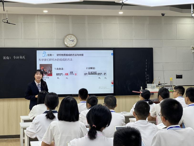 朱維斯老師利用任務(wù)驅(qū)動的學(xué)習(xí)模式,引導(dǎo)學(xué)生明確學(xué)習(xí)任務(wù)。課堂上,注重引導(dǎo)學(xué)生用多種方法探究物質(zhì)的組成。
