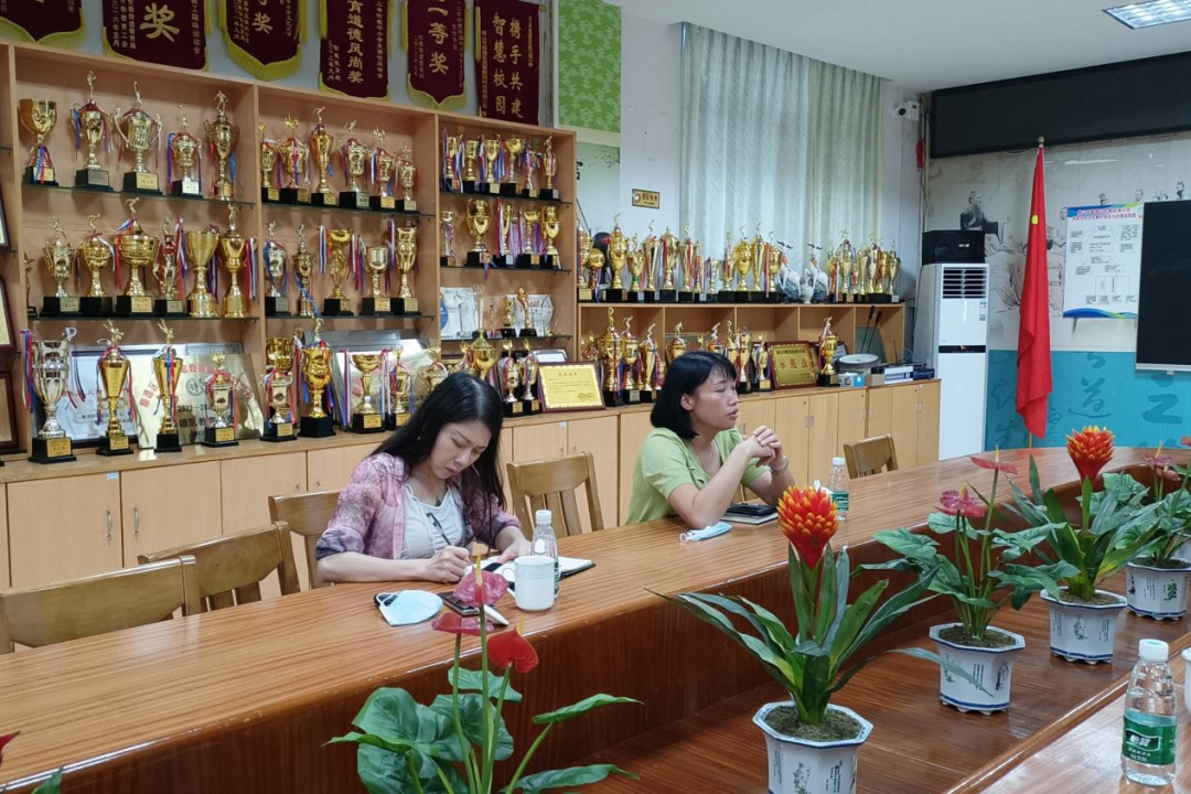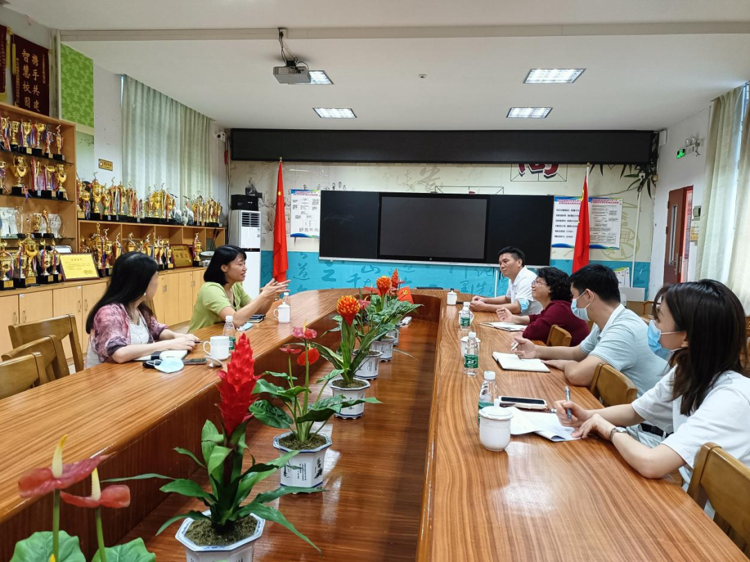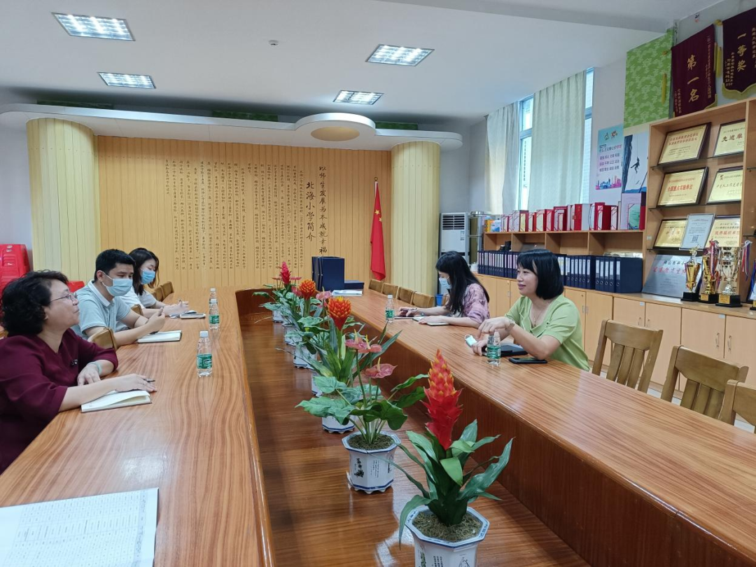 最后,大家移步會議室進行座談。郭麗華校長從北海小學(xué)近幾年校園校貌的改變;“全童教育”品牌特色建設(shè);勞動教育、粵劇、民族管弦樂、游泳、書香校園、魅力課堂等特色項目的傳承與打造;打造精品校本課程等方面作詳細匯報,并提出學(xué)校教育教學(xué)工作方面的困惑以及需求。