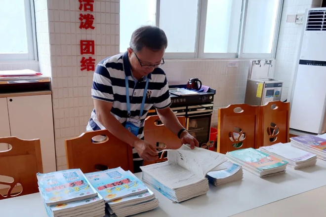 郭懷財檢查學生作業(yè)情況
