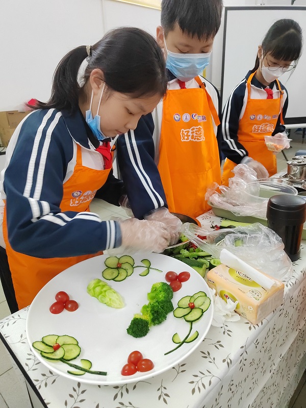 一道道色香味俱全的菜品在大家精湛的廚藝下呼之欲出,令人垂涎欲滴。一招一式盡顯大廚風(fēng)范,看!花開(kāi)富貴、孔雀開(kāi)屏年年有余、四季常青……小廚師們發(fā)揮了奇思妙想,給這些菜肴取了一個(gè)個(gè)特別的名字!