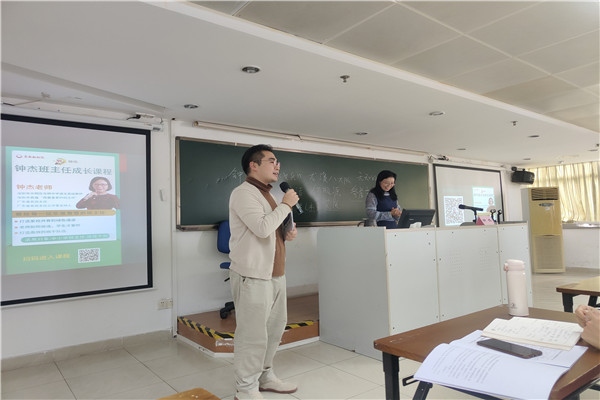 在“師德修養(yǎng)”課程中,殷杰老師以《為黨育人,為國(guó)育才》為大家作了精彩的講座。對(duì)于學(xué)生德育,殷杰老師有著自己的理念,那就是——為黨育人、為國(guó)育才。他強(qiáng)調(diào)要培養(yǎng)孩子正確的三觀、豐富他們的精神世界,要培養(yǎng)孩子的自學(xué)能力、思維能力和實(shí)踐能力,他幾十年如一日地踐行這一理念,令人敬佩。來自深圳市光明區(qū)光明中學(xué)的鐘杰老師為大家?guī)眍}為《如何打造滋養(yǎng)學(xué)生的班級(jí)文化》講座。她從常規(guī)文化和特色文化兩方面講述了打造滋養(yǎng)學(xué)生的班級(jí)文化的方法和重要性,鐘老師生動(dòng)形象的語言令老師們?nèi)炭〔唤叱慕逃囆g(shù)又令老師們受益匪淺,點(diǎn)頭稱贊。