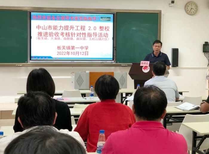 10月12日下午,中山市信息技術(shù)應(yīng)用能力提升工程2.0預(yù)驗(yàn)收入校指導(dǎo)活動(dòng)(板芙鎮(zhèn)、大涌鎮(zhèn)、南朗鎮(zhèn)、南頭鎮(zhèn)、五桂山鎮(zhèn)片區(qū))在中山市板芙鎮(zhèn)第一中學(xué)進(jìn)行。中山市教育教學(xué)研究室、市能力提升工程2.0辦公室副主任陳明宏老師、橫欄鎮(zhèn)教育和體育事務(wù)中心教研員王春明老師,及各鎮(zhèn)區(qū)相關(guān)學(xué)校校長(zhǎng)和老師參加此次活動(dòng)。