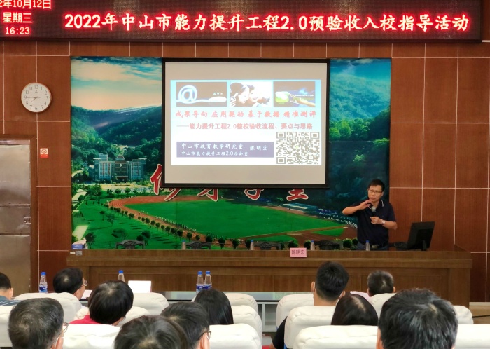 市能力提升工程2.0辦公室副主任陳明宏從整校驗(yàn)收流程、整校驗(yàn)收要點(diǎn)及整校驗(yàn)收思路上為與會(huì)人員作指導(dǎo),指導(dǎo)老師們通過(guò)對(duì)照《中山市績(jī)效考核指標(biāo)體系》進(jìn)行精準(zhǔn)測(cè)評(píng),為以后的驗(yàn)收考核工作作準(zhǔn)備。