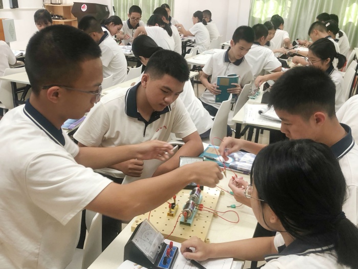 板芙鎮(zhèn)第一中學(xué)林曉婷老師進(jìn)行典型課例展示。林老師熟練運(yùn)用A5技術(shù)支持的課堂導(dǎo)入,A4探究型學(xué)習(xí)活動(dòng)設(shè)計(jì)學(xué)生分組實(shí)驗(yàn),并利用G1多技術(shù)融合教學(xué),將拍攝功能、粵教翔云、思維導(dǎo)圖等靈活運(yùn)用在物理課堂中。課后,林曉婷老師向?qū)<医M對(duì)使用多技術(shù)信息融合課堂進(jìn)行說(shuō)課,專(zhuān)家組針對(duì)林老師的說(shuō)課情況進(jìn)行了交流和指導(dǎo),認(rèn)為林老師的課堂,能將信息技術(shù)與學(xué)科教學(xué)融合,將所研究的能力點(diǎn)落地教學(xué),服務(wù)課堂,效果明顯。