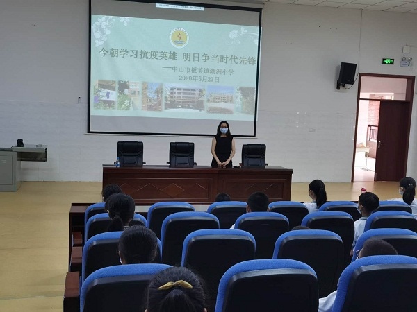 為了進(jìn)一步弘揚(yáng)抗“疫”精神,發(fā)揮戰(zhàn)“疫”英雄的榜樣示范作用,厚植愛國主義情懷,積極傳播社會(huì)正能量,2020年5月27日下午,湖洲小學(xué)特邀請(qǐng)?jiān)跤⑿邸猩绞邪遘芥?zhèn)板芙醫(yī)院馮潤彩護(hù)士到校開展宣講活動(dòng)。由于在特殊的疫情期間,本次活動(dòng)采用QQ視頻進(jìn)行現(xiàn)場直播的方式進(jìn)行。