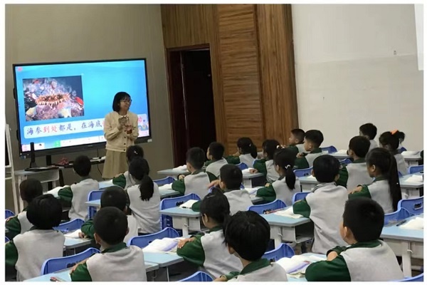 湖洲小學鄭詩婷老師也帶來了她獨出心裁的展示。鄭老師以創(chuàng)設(shè)成為小導游的情境為切入點,引導孩子感受西沙群島的美麗與富饒,讓孩子在玩中學,寓教于樂。鄭老師循循誘導,充分發(fā)揮了學生的積極性和主動性,課堂氣氛輕松和諧。最后,鄭老師還介紹了西沙群島的歷史背景,讓學生感受到祖國領(lǐng)土完整不可侵犯,從而培養(yǎng)學生的愛國主義情懷。