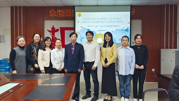 開題報(bào)告中。課題主持人何月燕老師通過選題背景、研究框架、思路方法、創(chuàng)新之處及預(yù)期成果五個方面作《小學(xué)高年段中華傳統(tǒng)節(jié)日文化學(xué)科融合主題式學(xué)習(xí)活動課程設(shè)計(jì)與實(shí)施的實(shí)踐研究》報(bào)告,并表示將以語文古詩詞文吟誦教學(xué)為線索,充分融合其他學(xué)科,深度挖掘基于學(xué)科融合的中華傳統(tǒng)節(jié)日文化主題式學(xué)習(xí)活動的可能性,構(gòu)建校本中華傳統(tǒng)節(jié)日文化教育教學(xué)新模式。