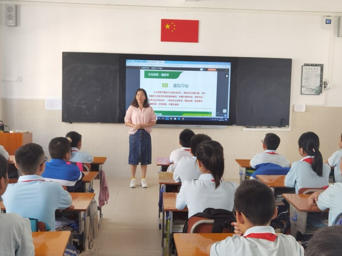 首先,各班圍繞重陽節(jié)舉行了以“濃濃重陽情,深深敬老意”為主題的班會活動。通過班會活動,孩子們不僅了解了重陽節(jié)的由來、傳說、習(xí)俗,而且懂得了尊敬老人是基本的社會公德和道德規(guī)范。課上,孩子們紛紛舉手表示將會努力做到尊重長輩,感恩長輩。
