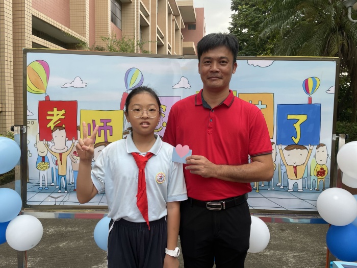 為了迎接一年一度的教師節(jié),旗北小學(xué)全體行政和體藝科組提前精心策劃,給旗北小學(xué)全體教師送上最真摯的祝福。上午7時(shí)30分,教學(xué)樓樓梯鋪上了鮮艷的紅地毯,裝點(diǎn)上節(jié)日的氣球,學(xué)生站在地毯兩側(cè),靜候旗北小學(xué)教師的到來。當(dāng)各位教師走上紅毯時(shí),兩旁學(xué)生一齊對(duì)老師說:“老師,您辛苦了,節(jié)日快樂!”隨后,學(xué)生向老師送出親手寫的賀卡并和老師合影留念,讓全體教師感受到了節(jié)日的驚喜。