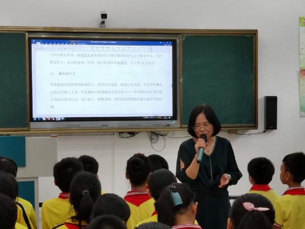 課上,吳秀容校長以“沒有人生來就是英雄,總有人用平凡成就偉大”作為導(dǎo)入,將新冠肺炎疫情期間,84歲的鐘南山院士、73歲的李蘭娟院士、疫情“吹哨人”李文亮、上海醫(yī)療救治專家組組長張文宏、武漢金銀潭醫(yī)院院長張定宇等抗疫英雄的故事用視頻的方式呈現(xiàn),激勵同學(xué)們學(xué)習(xí)抗疫英雄精神,厚植愛國情懷,樹立正確的人生觀、價值觀,聽黨的話跟黨走,牢記習(xí)近平總書記的教導(dǎo),為實(shí)現(xiàn)中華民族偉大復(fù)興的中國夢時刻準(zhǔn)備著。