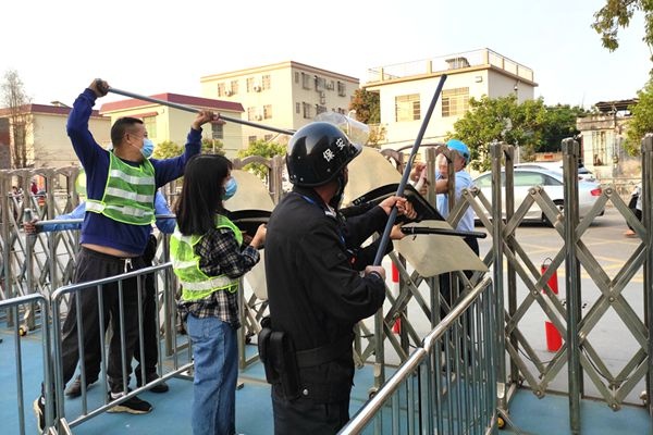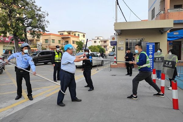 演練開始,一名“歹徒”在學(xué)校門口持續(xù)徘徊后強(qiáng)行進(jìn)入校園,被安保人員和應(yīng)急小單元成員及時(shí)發(fā)現(xiàn),立即啟動(dòng)《吉昌小學(xué)反恐防暴應(yīng)急預(yù)案》,安保人員和應(yīng)急小單元成員手持棍棒、鋼叉、盾牌進(jìn)行阻攔,大家合力控制住了“歹徒”,整個(gè)過程迅速有效、安全有序。