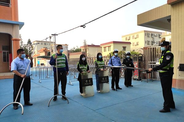 演練前,德育處歐見標(biāo)主任對(duì)防暴安全演練做好部署,對(duì)安保人員和應(yīng)急小單元成員宣講了反恐防暴知識(shí),并現(xiàn)場(chǎng)演示鋼叉、盾牌等常用器械的使用方法。提醒注意事項(xiàng),落實(shí)流程細(xì)節(jié),以確保演練活動(dòng)順利開展。