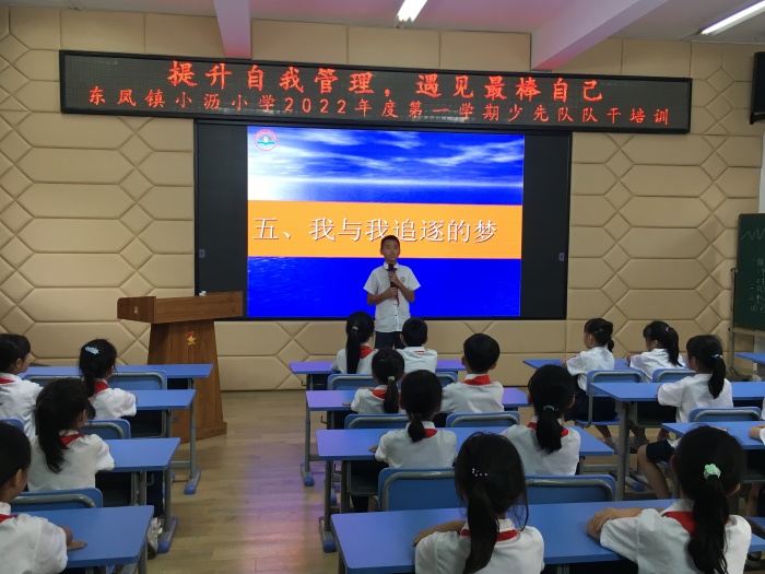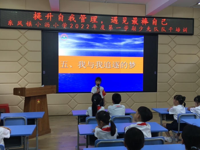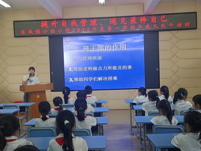會議伊始,小瀝小學大隊輔導員梁月儀從少先隊隊干部應具備的素質、修養(yǎng)、工作方法等方面進行了培訓,就隊干部在少先隊管理中的作用、職責、義務等方面進行了詳細的講解,強調隊干部要起好模范帶頭作用。聽取梁老師的分享后,隊干部們紛紛發(fā)表其今后的工作目標并分享各自過往切實可行的做法。最后,黎三妹副校長對隊干部提出了新的要求和希望,強調少先隊干部要在學校管理建設中發(fā)揮“領”與“導”的作用,履行好自己的職責,用自己的行動帶好“頭”,不斷發(fā)揮自己的聰明才智,把工作干得更出色。