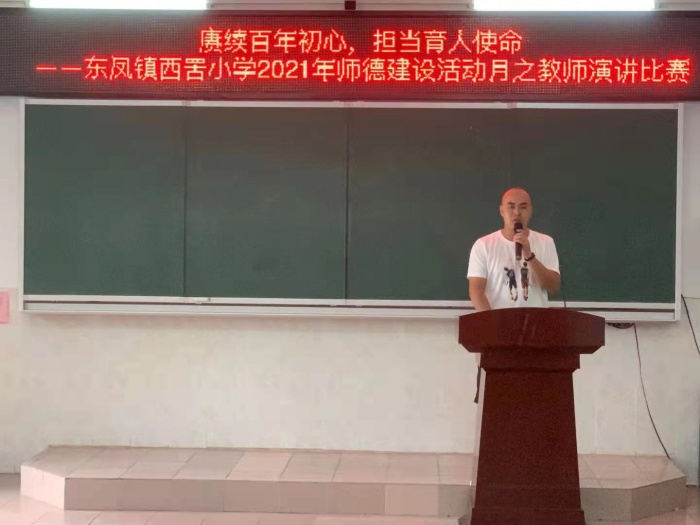 學(xué)為人師樹形象,行為師范正行風(fēng)。為進(jìn)一步弘揚(yáng)正氣,加強(qiáng)師德師風(fēng)建設(shè),提高教師的思想道德素養(yǎng)和敬業(yè)奉獻(xiàn)精神,9月17日下午,東鳳鎮(zhèn)西罟小學(xué)舉行了以“賡續(xù)百年初心,擔(dān)當(dāng)育人使命”為主題的好教師微故事演講比賽。