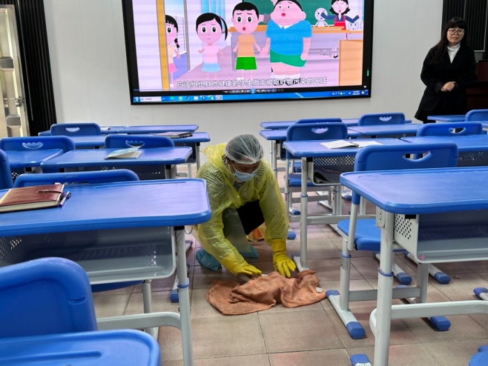 為了給孩子一個(gè)更安全舒適的環(huán)境,演練結(jié)束后學(xué)校組織全體老師進(jìn)行了愛(ài)國(guó)衛(wèi)生運(yùn)動(dòng)。教師對(duì)所有教室及功能室等公共區(qū)域進(jìn)行大清潔、消毒。