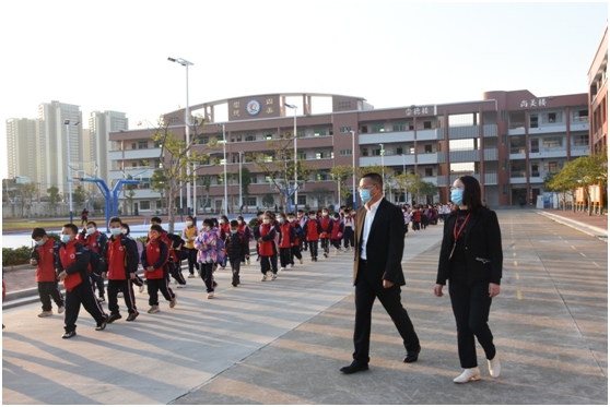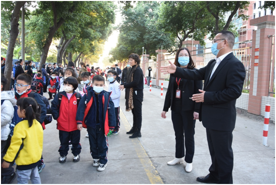 隨后,熊小潮對(duì)學(xué)校放學(xué)情況進(jìn)行了重點(diǎn)考察,對(duì)學(xué)校學(xué)生放學(xué)行徑的清晰明確、值日教師的盡職盡責(zé)、學(xué)生列隊(duì)的整齊有序給予了充分的肯定。熊小潮還強(qiáng)調(diào),在面臨較大交通壓力的情況下,更要加強(qiáng)校園放學(xué)安全管理,全面保障師生的安全。