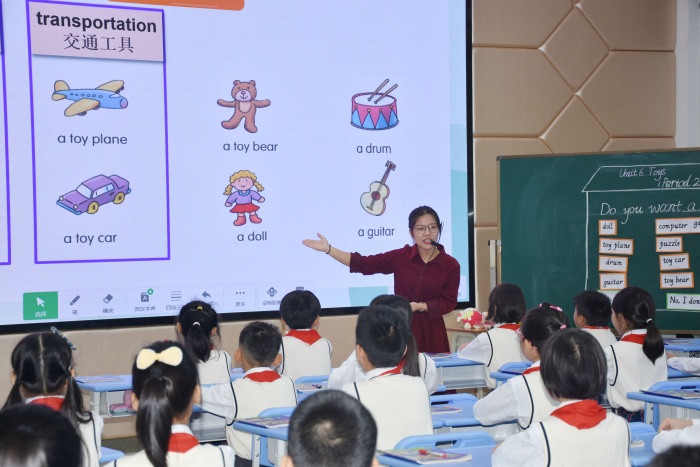 本次活動首先觀摩兩位新老師的課例。第一節(jié)現(xiàn)場展示課由安樂小學(xué)的廖文瑤老師授課,內(nèi)容為廣東開心版四年級上冊Unit6 Toys的故事教學(xué)。在課堂中廖老師以游戲引入,語音語調(diào)生動自然,發(fā)揮了教師的主導(dǎo)作用,學(xué)生在展示環(huán)節(jié)中表現(xiàn)得落落大方,課堂效果顯著。第二節(jié)現(xiàn)場展示課由中心小學(xué)的林觀清老師授課,內(nèi)容為廣東開心版四年級上冊Unit6 Toys的詞匯教學(xué)。林老師教學(xué)風(fēng)格親切自然,基本功扎實(shí),以輕松活潑的方式組織教學(xué),充分調(diào)動了學(xué)生學(xué)習(xí)的積極性,同時注重培養(yǎng)學(xué)生對語言的運(yùn)用,讓學(xué)生在小組活動中通過分享自己的玩具來習(xí)得語言。