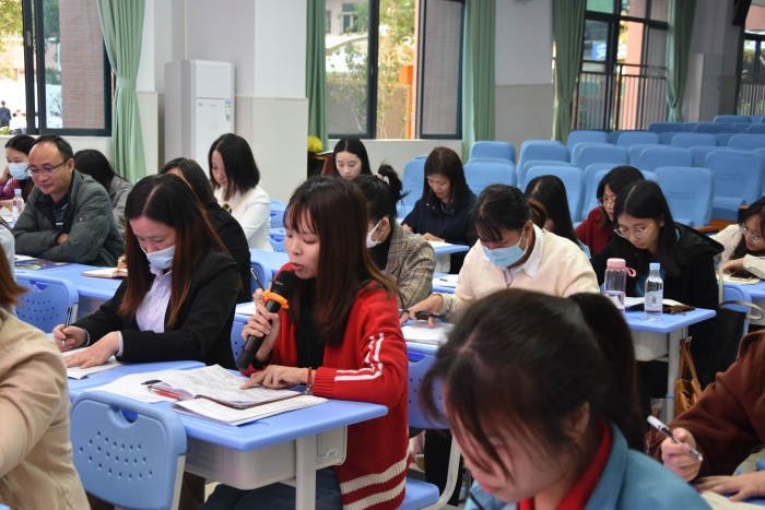 隨后,林妙麗老師和林月英老師為新老師們帶來了精彩的講座。林妙麗老師圍繞何為跨教材、跨教材教學(xué)資源的價值和跨教材教學(xué)資源的開發(fā)與運(yùn)用三個方面展開分享,鼓勵老師們整合教材,取長補(bǔ)短,不斷豐富自己的教學(xué)環(huán)節(jié)。而林月英老師就新教師的專業(yè)成長之路展開分享。林老師肯定了年輕教師獨(dú)特的優(yōu)勢,鼓勵老師們多讀書,積極研究名師課堂,積極開展課題研究,潛心學(xué)習(xí),博采眾長,并運(yùn)用到自己的教學(xué)中來。
