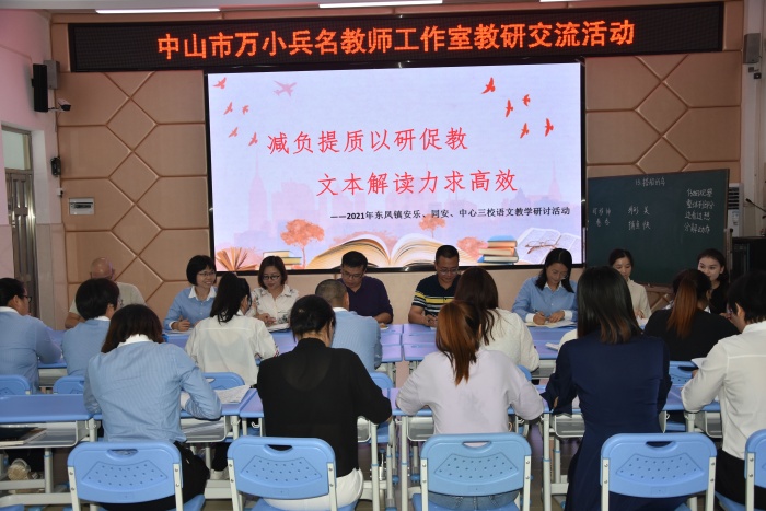為落實(shí)“雙減”政策,提升教師專業(yè)素養(yǎng),提高教師文本解讀力,打造高效課堂,10月14日下午,在東鳳鎮(zhèn)中心小學(xué)舉行了東鳳鎮(zhèn)中心小學(xué)、安樂(lè)小學(xué)、同安小學(xué)語(yǔ)文“三校聯(lián)研”教學(xué)研討活動(dòng)。本次活動(dòng)特邀中山市語(yǔ)文名教師萬(wàn)小兵蒞臨現(xiàn)場(chǎng)指導(dǎo),東鳳鎮(zhèn)中心小學(xué)胡小明校長(zhǎng)、安樂(lè)小學(xué)的嚴(yán)婧副校長(zhǎng)、三所學(xué)校的語(yǔ)文老師們參加了本次活動(dòng)?! ?/p>
