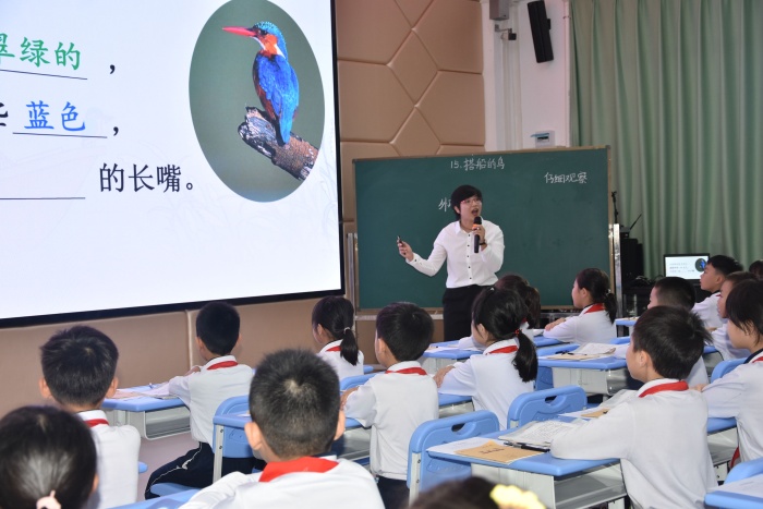 活動(dòng)分為三大環(huán)節(jié),第一環(huán)節(jié)是課例展示。由東鳳鎮(zhèn)中心小學(xué)陳碧娟老師帶來(lái)三年級(jí)上冊(cè)課例《搭船的鳥》。陳老師先引導(dǎo)學(xué)生整體把握課文內(nèi)容,學(xué)生通過(guò)多層次的朗讀、交流,清楚地知道了作者對(duì)雨點(diǎn)、船夫、翠鳥外形、翠鳥捕魚等作了細(xì)致的觀察。然后通過(guò)抓翠鳥捕魚的動(dòng)詞,想象翠鳥捕魚的情景,突破了本節(jié)課的學(xué)習(xí)重難點(diǎn)。最后結(jié)合課外觀察實(shí)踐活動(dòng),讓學(xué)生觀察我們常見的小動(dòng)物,記錄觀察所得,為單元習(xí)作做準(zhǔn)備。