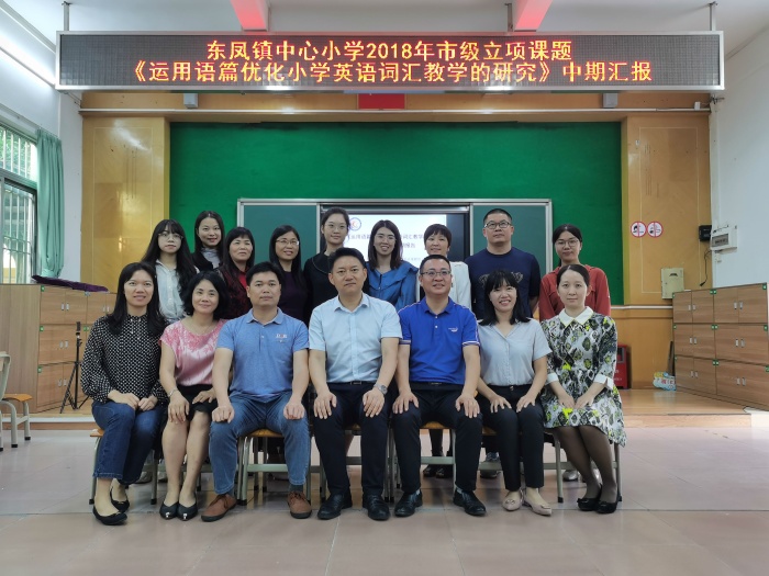 為進(jìn)一步規(guī)范和落實(shí)課題研究,確保課題研究的實(shí)效性和規(guī)范性,11月2日下午,中山市東鳳鎮(zhèn)中心小學(xué)召開(kāi)英語(yǔ)科2018年市級(jí)立項(xiàng)課題《運(yùn)用語(yǔ)篇優(yōu)化小學(xué)英語(yǔ)詞匯教學(xué)的研究》中期匯報(bào)會(huì)。中山市教研室張?zhí)﹦偫蠋煛|鳳鎮(zhèn)教育和體育事務(wù)中心陳林方老師、中山市實(shí)驗(yàn)小學(xué)何娟老師和中心小學(xué)胡小明校長(zhǎng)、李肖芳副校長(zhǎng)以及課題組全體成員參加了本次活動(dòng)。