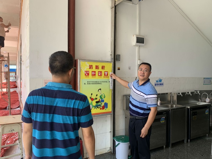 最后胡小明校長對防疫安全工作也進行了仔細的檢查,包括學(xué)校的校門、體溫檢測點、隔離室、教室、飲水機處等場所的疫情防控措施落實情況,錯峰上學(xué)、放學(xué)方案、就餐安排、衛(wèi)生消毒、物資準(zhǔn)備等復(fù)學(xué)準(zhǔn)備工作情況,
