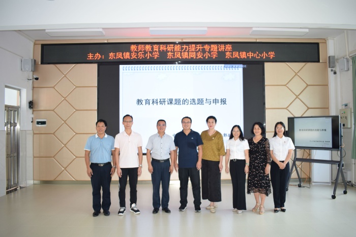 教育科研課題是體現(xiàn)教師教育科學研究水平的重要標志,為引導教師重視教學、研究教學、潛心教學,提高教育科學研究水平,助力學校高質(zhì)量發(fā)展,2022年8月31日,東鳳鎮(zhèn)中心小學、安樂小學、同安小學三所學校的老師齊聚一堂,共同邀請了中山市教研員郭躍輝老師為教師們開展《教育科研課題的選題與申報》專題講座。郭躍輝老師結(jié)合自己多年來從事教科研工作的經(jīng)驗,從教師專業(yè)化發(fā)展入手,結(jié)合具體的案例,分別從明確課題研究方向、依據(jù)熱點理論選題、規(guī)范擬定課題標題、有序分析研究背景、嚴謹進行文獻綜述、嚴密構(gòu)建研究框架、美觀呈現(xiàn)課題文本、周密規(guī)劃研究進程等八大方面內(nèi)容為教師們進行了詳細的講解和充分的指導。