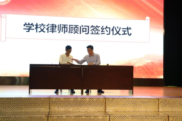 為了讓學(xué)校的法制工作開(kāi)展得更加順暢,學(xué)校聘請(qǐng)東區(qū)起灣派出所警員李木生為學(xué)校法制輔導(dǎo)員,聘請(qǐng)東區(qū)起灣派出所副所長(zhǎng)羅勇彬?yàn)閷W(xué)校法制副校長(zhǎng),林校長(zhǎng)為他們頒發(fā)了聘書。同時(shí),學(xué)校還聘請(qǐng)了廣東凱行律師事務(wù)所朱志強(qiáng)律師為學(xué)校專業(yè)的律師顧問(wèn),并進(jìn)行了簽約。