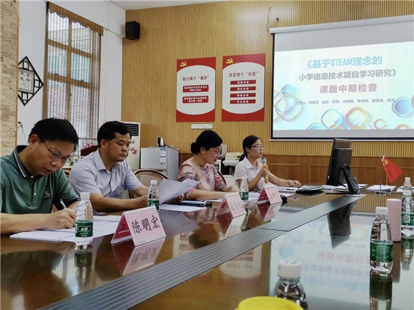 為了對課題的前期研究進行總結(jié)診斷,對后期研究進行調(diào)整指導,確保課題研究全過程的實效性和規(guī)范性,6月28日上午,中山市東區(qū)雍景園小學召開信息技術學科市級教科研課題《基于STEAM理念的小學信息技術項目學習研究》中期匯報會。雍景園小學誠邀教育部國培計劃專家、廣東省特級教師、市教研室信息技術教研員陳明宏老師,廣東省特級教師、廣東省“特支計劃”教學名師、廣東省名師工作室主持人黃偉祥老師,東區(qū)教育事務指導中心熊海敏副主任作為課題評議專家參加本次報告會。參加此次活動的還有雍景園小學歐淑霞校長、黃玉嬋副校長、劉志博副主任及課題組全體成員。