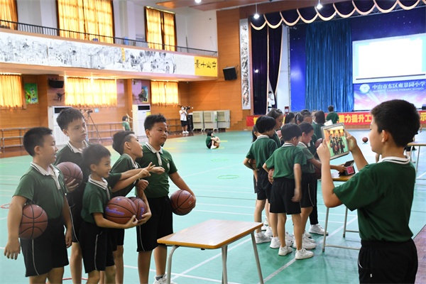 為發(fā)揮能力提升工程2.0試點(diǎn)區(qū)和試點(diǎn)校示范引領(lǐng)作用,探索智慧教育環(huán)境下體育學(xué)科的教學(xué)模式,促進(jìn)信息技術(shù)與教育教學(xué)融合創(chuàng)新發(fā)展,2022年9月28日上午,東區(qū)雍景園小學(xué)承辦了主題為“智慧領(lǐng)航·創(chuàng)新課堂”的中山市能力提升工程2.0體育學(xué)科典型課例的展示交流活動(dòng),并進(jìn)行了現(xiàn)場(chǎng)直播。廣東省教育研究院體育教研員肖建忠博士、中山市能力提升工程2.0辦公室吳寒冬主任、中山市教育教學(xué)研究室教研員陳明宏老師、中山市教育教學(xué)研究室兼職體育教研員李濤老師、中山市教育技術(shù)中心陳志豪老師、東區(qū)街道教育和體育事務(wù)中心體育教研員梁國來老師、東區(qū)雍景園小學(xué)歐淑霞校長、東區(qū)各學(xué)校體育老師以及線上的老師參加了本次活動(dòng)。