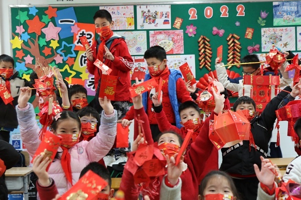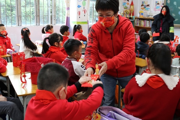 思政課后,派紅包環(huán)節(jié)將開學(xué)典禮的氣氛推向了高潮。伴隨著喜慶的音樂,老師們將滿含祝福的紅包一一派發(fā)給孩子們。帶著這份特殊的紅包祝福,同學(xué)們?cè)俅沃販刂裨沸W(xué)誓詞,牢記自身使命。開學(xué)典禮也在整齊響亮的宣誓聲中落下了帷幕。竹苗拔節(jié)聲聲脆,瑞虎歡騰步步高。在新的一年里,竹苑小學(xué)全體師生將積極向上、努力拼搏,以實(shí)際行動(dòng)抒發(fā)愛國(guó)情感,弘揚(yáng)愛國(guó)傳統(tǒng)!