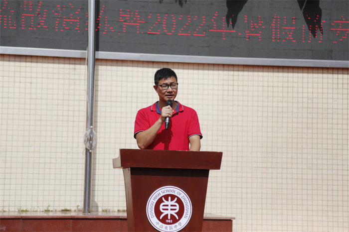 接著,蔡主任對全體同學(xué)進(jìn)行了2022年暑假前安全教育。他就疫情防控、交通安全、防溺水安全、飲食安全、用電安全、消防安全、網(wǎng)絡(luò)安全、打工安全、預(yù)防中暑等方面為進(jìn)行了安全教育。重點強(qiáng)調(diào)了防溺水安全,要求學(xué)生做到不到無安全設(shè)施、無救援人員的水域游泳,不到不熟悉的水域游泳。發(fā)現(xiàn)同伴溺水,立即尋求成人幫助,不手拉手盲目施救,要智慧救援。
