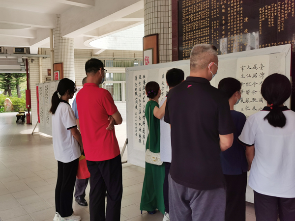 2022年6月28日,中山市東區(qū)中學(xué)美術(shù)書(shū)法作品展隆重開(kāi)幕,參加此次展覽的有東區(qū)中學(xué)謝柏芳校長(zhǎng)、馬榮林副校長(zhǎng)、高宏副校長(zhǎng)、教導(dǎo)處尹冬枚主任、班主任和全體藝術(shù)生家長(zhǎng)。謝柏芳校長(zhǎng)致開(kāi)幕詞,謝校首先對(duì)此次展覽給予充分的肯定,并指出在當(dāng)前的國(guó)際背景下要增加文化自信,而中國(guó)書(shū)畫(huà)屬于中國(guó)傳統(tǒng)文化精髓,要充分繼承和發(fā)揚(yáng)。最后祝愿學(xué)生們?cè)诤材珪?shū)香中取得理想成績(jī)!