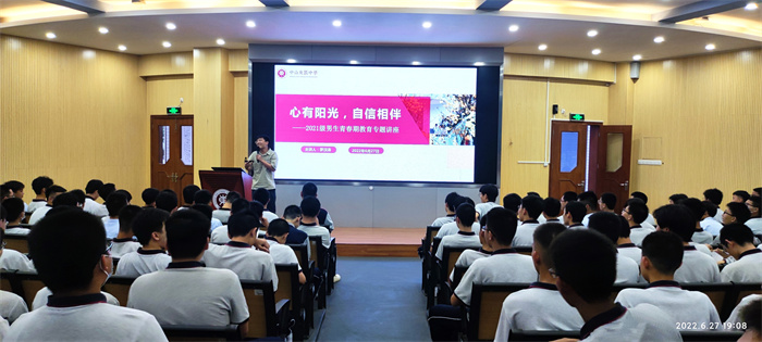 青春期是指由兒童階段發(fā)展為成人階段的過渡時期,是人身心發(fā)展的重要時期,在這個過程中,青少年會經歷身體上的發(fā)育和心理上的發(fā)展及轉變。青春期是人生發(fā)展的一個重要階段,也是性教育的關鍵時期。幫助青少年了解青春期的身心發(fā)展變化,學習如何處理人際關系,有利于促進青少年的身心發(fā)展與社會性發(fā)展。6月27日晚上七點,東區(qū)中學德育處組織了高一年級男生開展青春期心理健康教育講座,本次講座由高一年級生物教師羅汶濤主講。