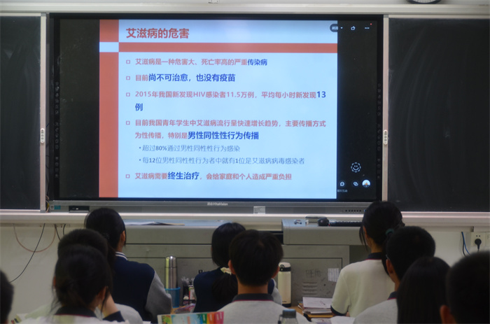 講座開始,來副所長以一個通關(guān)小游戲激起了學(xué)生們的學(xué)習(xí)欲望,留下小懸念。以小王的故事,讓同學(xué)們對艾滋病有了進一步了解。接下來,來副所長深入淺出地講解了艾滋病的危害、艾滋病的主要傳播途徑、艾滋病病毒的特點等相關(guān)知識,用生動的事例讓學(xué)生們深刻的了解了艾滋病的危害,了解了有效防治艾滋病的具體措施以及發(fā)生高危行為后的應(yīng)對方法(如必要時可采用藥物阻斷、早發(fā)現(xiàn)、早診斷),講者講得認真,聽者聽得專注。