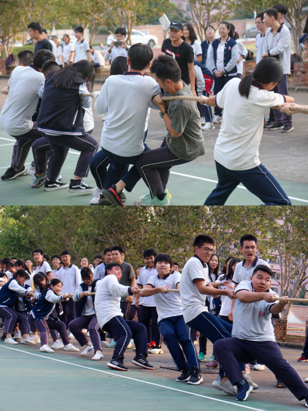賽場上,各班早已排兵列陣,摩拳擦掌,躍躍欲試。一根長長的拔河繩,凝聚著競賽雙方的勇氣、智慧和力量,承載著東區(qū)中學(xué)學(xué)生的激情、自信和活力。