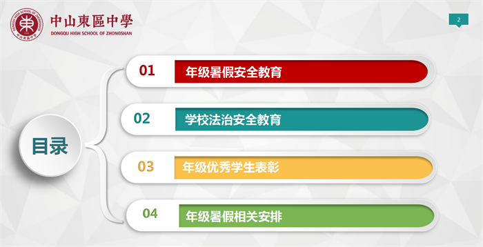 會議分成四個部分,首先,年級進行暑假安全教育工作,戰(zhàn)“疫”尚未結(jié)束,疫情防控仍不能大意,不去人群密集的地方,出門做好防護;交通安全,遵守交通規(guī)則,文明出行;防溺水安全,不獨自或約同學到池塘、河流、水庫、湖泊等地方游玩,牢記防溺水“六不準”;手機已經(jīng)成為學生手邊必備的通訊工具,黃主任提醒學生要注意網(wǎng)絡(luò)安全。第二部分,對家長及學生進行法治教育工作,讓學生意識到做一名遵紀守法的公民的重要性。希望學生在日后遇到法律問題時,也能通過法律手段維護自身的合法權(quán)益。第三部分,針對本學期表現(xiàn)優(yōu)秀的學生進行表彰,黃主任對獲獎同學提出表揚,并且號召其他同學向優(yōu)秀的同學學習。第四部分,對于暑假的相關(guān)工作進行布置,希望同學們度過一個充實而有意義的假期生活。