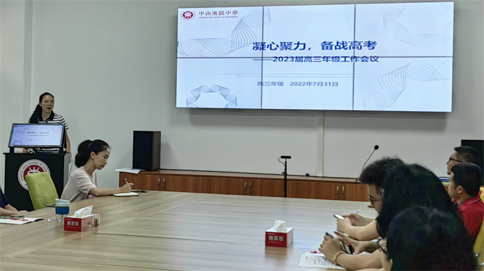 2022年7月31日上午,中山市東區(qū)中學(xué)2023屆高三年級在學(xué)校信息中心舉行了新學(xué)年高三年級工作會議。此次會議由符曉主任主持,謝柏芳校長、馬榮林副校長、高宏副校長、高三年級落級行政以及全體高三教師參與。此次會議的重要性不言而喻,旨在調(diào)動全體高三教師的工作積極性,明確努力的方向和肩上所承擔(dān)的責(zé)任。