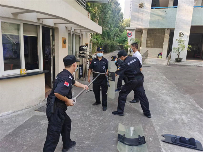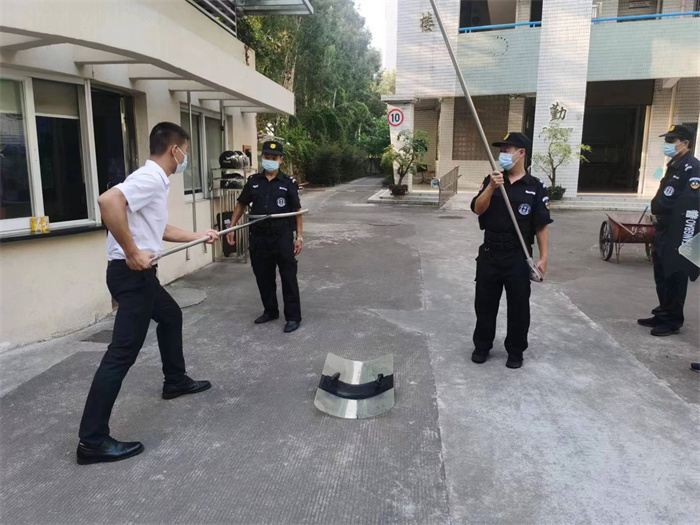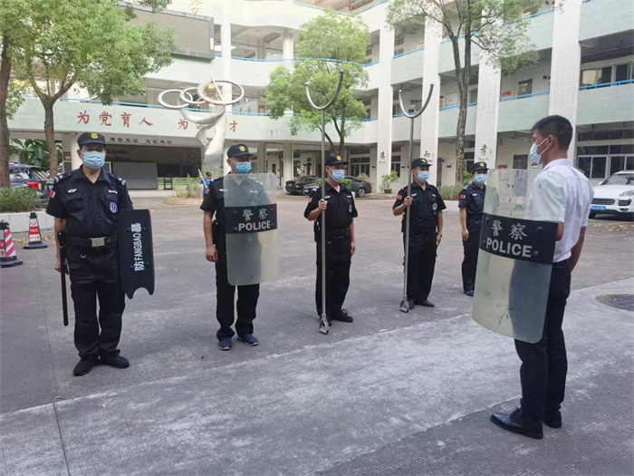 “遇到緊急情況,要使用好手中的器械,在保護(hù)好自己、保護(hù)好周圍師生前提下,與歹徒形成對(duì)峙。爭(zhēng)取時(shí)間,及時(shí)報(bào)警,配合公安機(jī)關(guān)共同制服歹徒?!毖菥毈F(xiàn)場(chǎng),物業(yè)公司吳敏聰經(jīng)理為大家介紹了最小應(yīng)急單元培訓(xùn)要求,講解了盾牌、鋼叉、應(yīng)急棍、抓捕器等器械的特點(diǎn)、用途及應(yīng)對(duì)突發(fā)事件的措施。培訓(xùn)完后,學(xué)校對(duì)全體保安進(jìn)行了突發(fā)事件應(yīng)急處置模擬演練。當(dāng)保安人員發(fā)現(xiàn)可疑人員持械欲闖入校園,最小應(yīng)急單元馬上增援,快速操起盾牌,拿出鋼叉,將“歹徒”制服住。