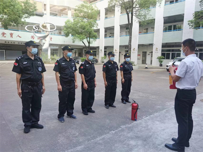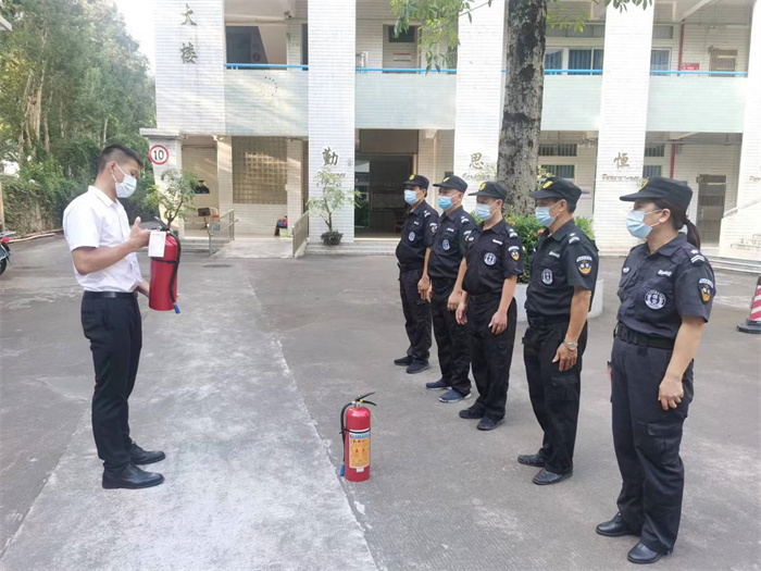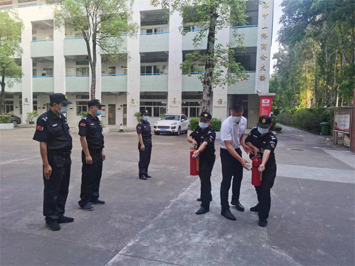 培訓(xùn)的第二個(gè)內(nèi)容是消防演練。培訓(xùn)開(kāi)始,吳經(jīng)理就火災(zāi)發(fā)生的原因,日常消防巡查的注意事項(xiàng),滅火器的使用方法等進(jìn)行了詳細(xì)的講解。最后,對(duì)值班保安發(fā)現(xiàn)校園火災(zāi)的正確處置流程進(jìn)行了模擬演練。