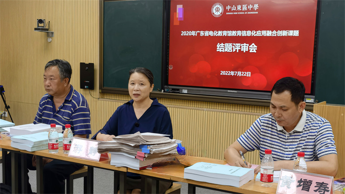 經(jīng)過為期兩年的深入研究,2022年7月22日下午,中山市東區(qū)中學(xué)《基于SPOC的線上線下混合式高中教學(xué)模式行動研究》、《基于省教育資源公共服務(wù)平臺的高中整本書閱讀研究》、《基于語料庫驅(qū)動下的高中外語閱讀教學(xué)實(shí)踐研究》等三個(gè)2020年廣東省電化教育館教育信息化應(yīng)用融合創(chuàng)新課題在學(xué)校錄播室迎來結(jié)題評審會。此次會議邀請了中山市教育技術(shù)中心副主任游靜、賈建榮老師、中山市教育教學(xué)研究室高中生物教研員黃增壽老師三個(gè)專家。會議由學(xué)校教導(dǎo)處尹冬枚副主任主持,三個(gè)課題組全員參與。