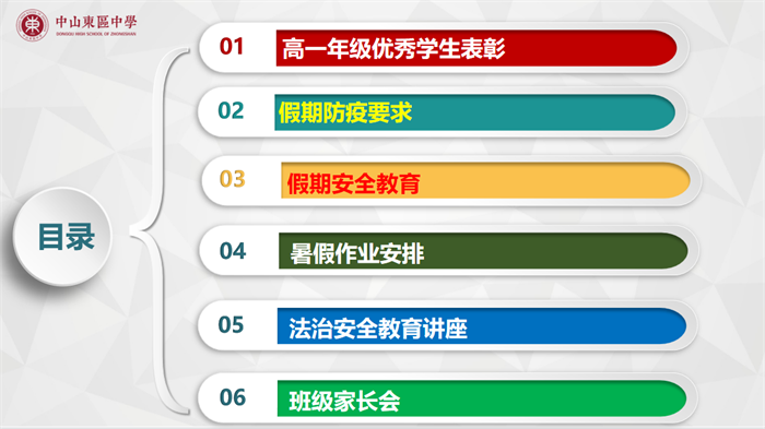 歲月不居,天道酬勤。假期的生活也是實現(xiàn)自我調(diào)整與提升和彎道超車的關(guān)鍵。錢主任也對即將開始的暑假生活進(jìn)行了叮囑。合理作息、健康生活;加強(qiáng)交通安全意識;加強(qiáng)防溺水意識;提高自我防護(hù)意識;提高網(wǎng)絡(luò)安全意識。同時,也向家長與同學(xué)布置了德育實踐作業(yè),以期培養(yǎng)學(xué)生家國意識、豐富文化常識、增進(jìn)親子感情。