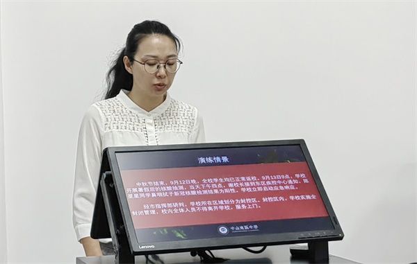 “中秋假期后在校園常態(tài)化核酸抽測中,發(fā)現(xiàn)一名學(xué)生鼻咽拭子核酸檢測結(jié)果為陽性,學(xué)校如何啟動應(yīng)急響應(yīng)機(jī)制?如何合理安排校園封控期間的防疫管理工作?”9月9日,在中秋假期開始之前,中山市東區(qū)中學(xué)開展了校園疫情防控應(yīng)急模擬桌面推演活動,旨在進(jìn)一步檢驗(yàn)提高學(xué)校新冠疫情防控應(yīng)急處置能力,確保師生假期后安全有序返校。