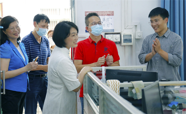 巡視校園期間,馮金怡副主席還聽取了謝柏芳校長關(guān)于學(xué)校辦學(xué)情況的匯報(bào)。謝校長向市、局領(lǐng)導(dǎo)介紹了學(xué)校的基本情況以及學(xué)校發(fā)展存在的難點(diǎn)和焦點(diǎn)問題。馮金怡副主席對學(xué)校的創(chuàng)新發(fā)展理念和近年來取得的進(jìn)步給予了高度肯定,她說:“學(xué)校雖小,但很精致,很有內(nèi)涵,東區(qū)中學(xué)為中山孩子們做出了很大的努力。”針對學(xué)校發(fā)展中遇到的困難,特別是學(xué)生宿舍、功能場室不足等問題,她表示,將進(jìn)一步深入調(diào)研了解情況,積極同各級領(lǐng)導(dǎo)和相關(guān)部門認(rèn)真研討,努力推動(dòng)落實(shí)解決。她勉勵(lì)學(xué)校領(lǐng)導(dǎo)班子,教師是學(xué)校發(fā)展的第一資源,要切實(shí)關(guān)心、關(guān)愛教師,在有限的條件下,努力探索為教師創(chuàng)造良好的工作、學(xué)習(xí)和生活條件,讓教師安心從教、潛心育人,推動(dòng)學(xué)校教育教學(xué)質(zhì)量再上新臺(tái)階。