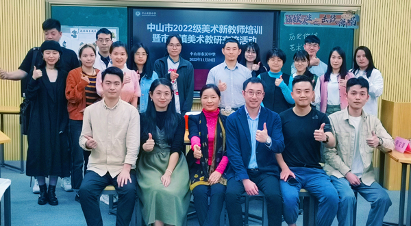 2022年11月24日下午,中山市2022級美術(shù)新教師培訓(xùn)暨市、鎮(zhèn)美術(shù)教研交流活動在中山市東區(qū)中學(xué)順利舉行,東區(qū)中學(xué)副校長周雨寰、中山市名教師劉堅工作室成員、中山紀念中學(xué)集團化美術(shù)教研組長張寶峰、中山紀念中學(xué)集團化學(xué)校、中山市濠頭中學(xué)以及東區(qū)中學(xué)美術(shù)科組、傳統(tǒng)文化科組等美育骨干教師出席了本次教研活動,因疫情防控要求,2022級美術(shù)新教師分別以線上與線下相結(jié)合的方式參與本次交流與學(xué)習(xí)。